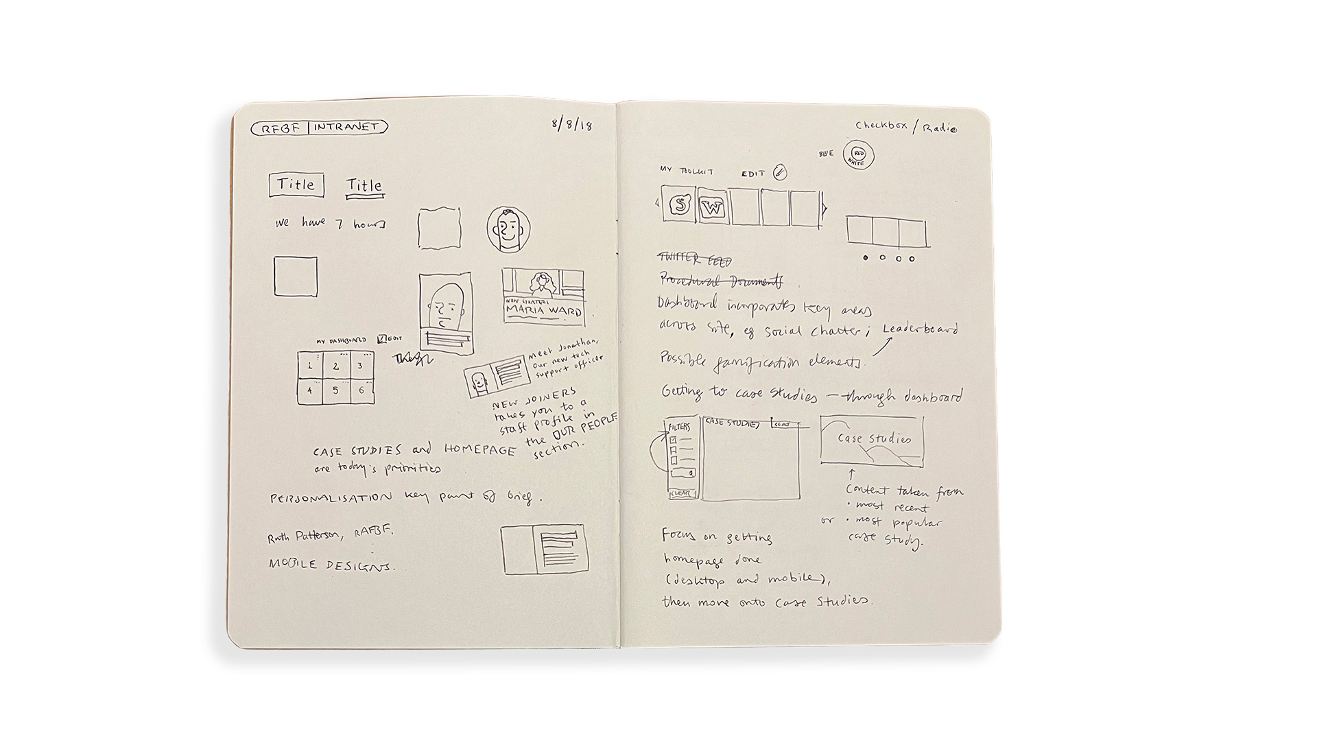 Working from wireframes, I produced pixel-perfect mockups using Sketch, using visual cues from the existing RAFBF site as a starting point and adding some original flourishes to give the intranet site its own look and feel.